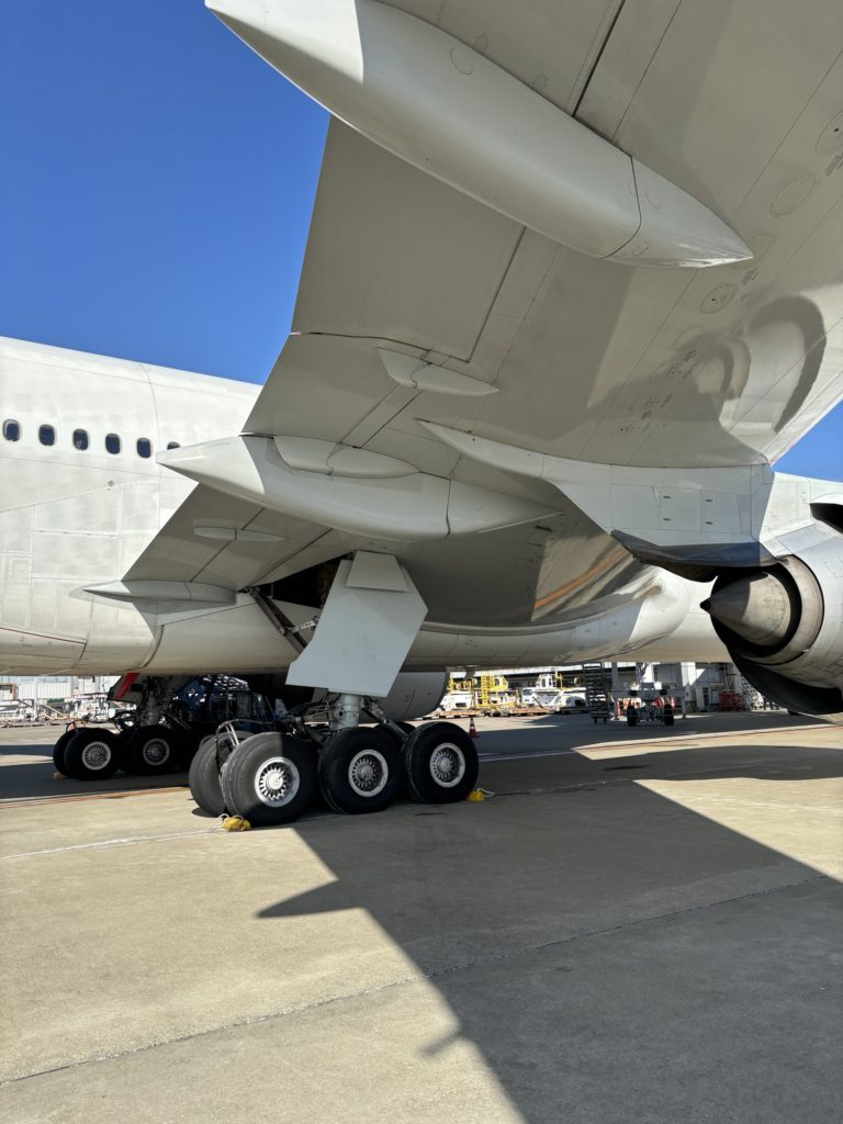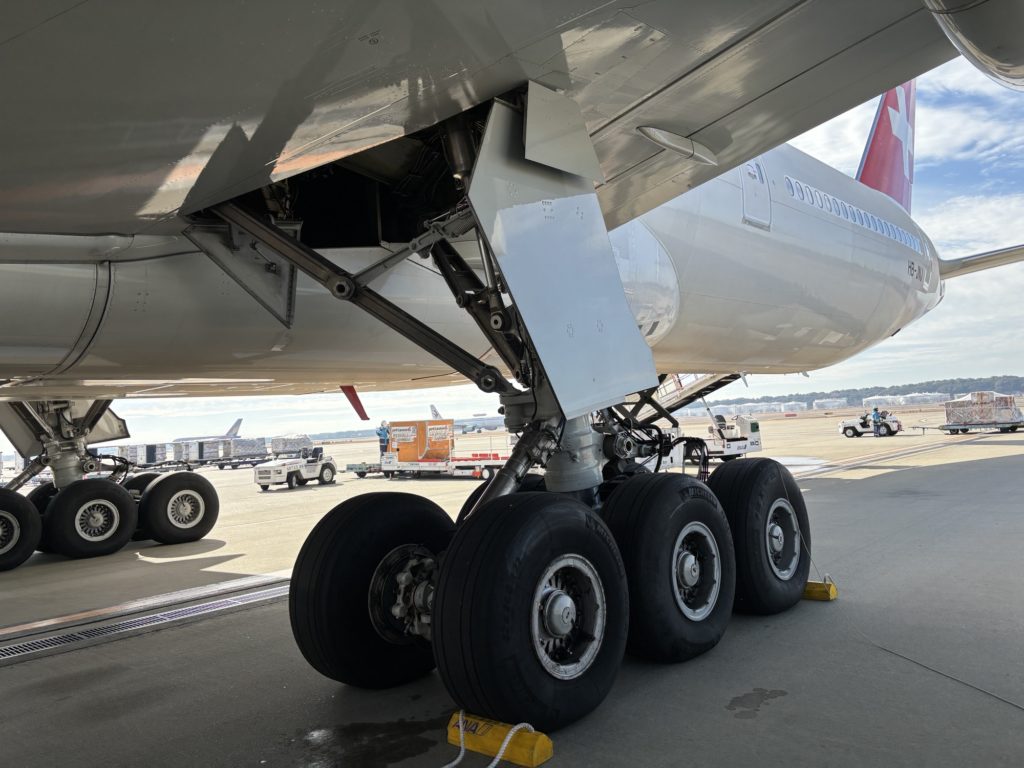 Im Prinzip läuft mal einmal rund um den Flieger – und das dauert, je nach Beinlänge und Schrittgrösse, dann schon mal gut 10 Minuten – und ist ein willkommener Ausgleich zu den folgenden 10 Stunden sitzen.